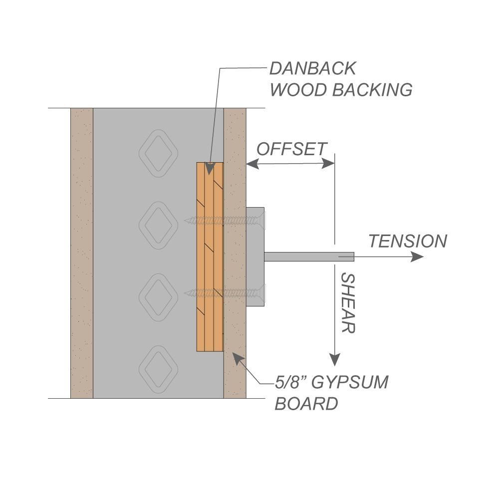 Danback provides superior connection shear and pullout strength to support and meet even some of the heaviest loading conditions. Simply snap, flex and screw Danback into place. The patented hinge design actually flexes around the stud and snaps into place for a perfect fit-every time.