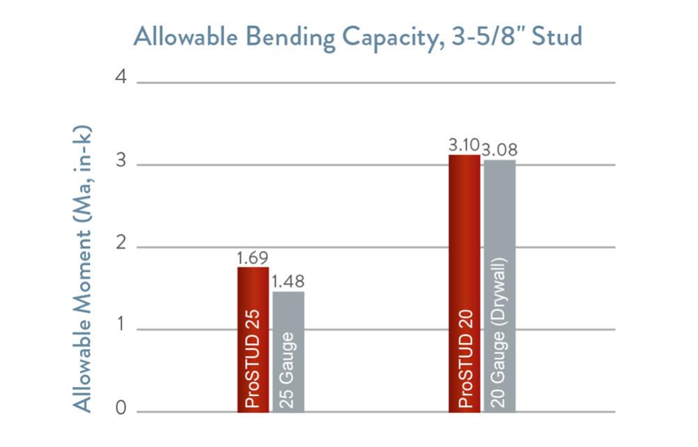 Gauge equivalent drywall framing must meet the minimum performance requirements of conventional drywall framing as defined by the Steel Framing Industry Association (SFIA). The industry’s “EQ” product of choice, ProSTUD®, employs roll-forming and steel-making technology, exceeding the performance of conventional drywall framing for allowable moment and screw connection strength.