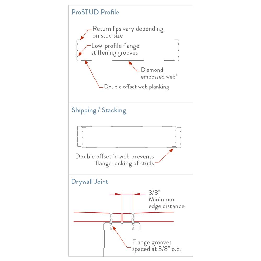 ProSTUD Drywall Framing System (ProSTUD® and ProTRAK®) with Smart Edge™ Technology is the innovative steel drywall stud that sets a new industry benchmark for high performance. Its patented design combines high-strength steel with additional stiffening enhancements for a drywall framing stud previously unimagined.