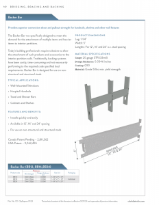 The Backer Bar was specifically designed to meet the demand for the attachment of multiple items and heavier items to interior partitions. Provides superior connection shear and pullout strength for handrails, shelves and other wall fixtures.