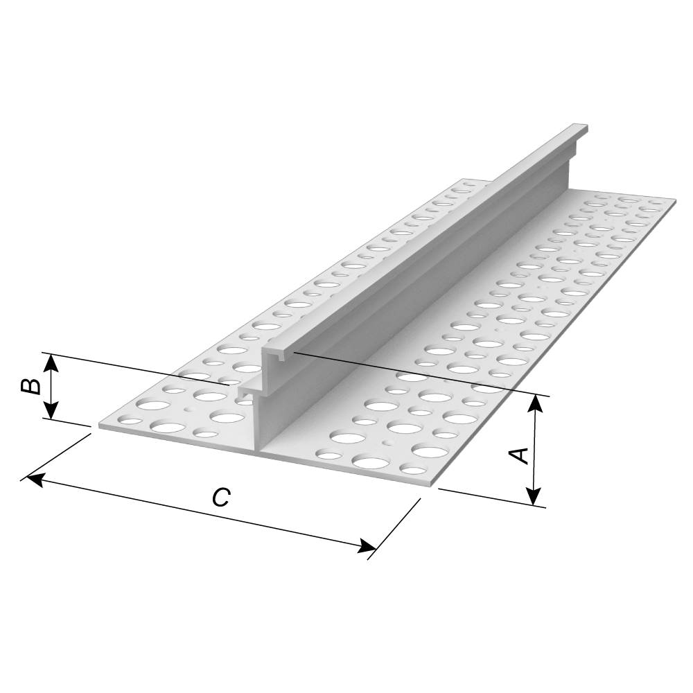 The grounds on both sides act as a guide for finishing smooth transitions. Perforated flanges allow for more secure attachment.