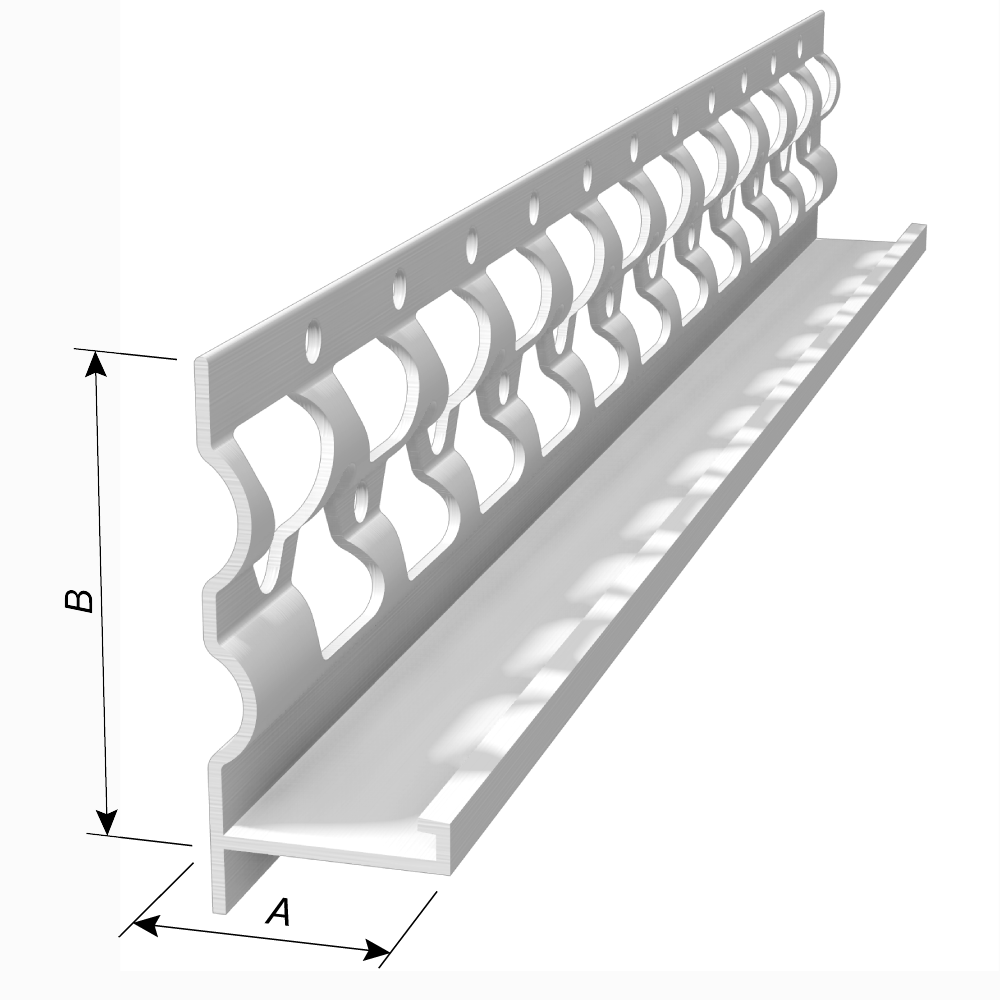 PVC Casing Bead with embeddable flange design designed to terminate stucco and plaster with a moisture trap. ClarkDietrich E-Flange embeddable stucco profiles provide 80% more embedment than standard "flat flange" profiles.
