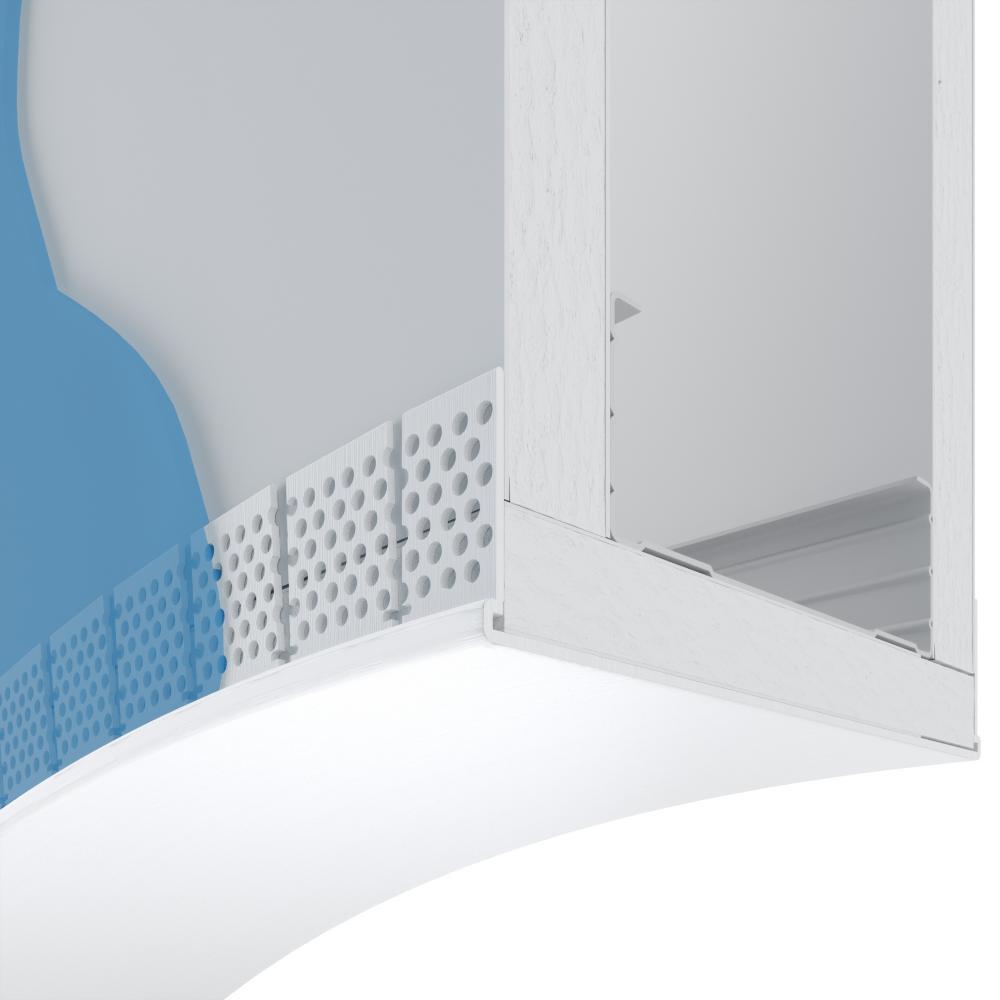 Partition End Caps are designed with a “T” slotted flange to create straight-to-curve arches by simply cutting the ends of "T" slots where arches or curve is desired. This product provides time (cost) savings through single-piece installation versus installing two corner beads. You also use less compound than two corner bead applications. Multiple perforations enhance strength of joint compound adhesion. Easy to cut, rust proof and dent resistant.